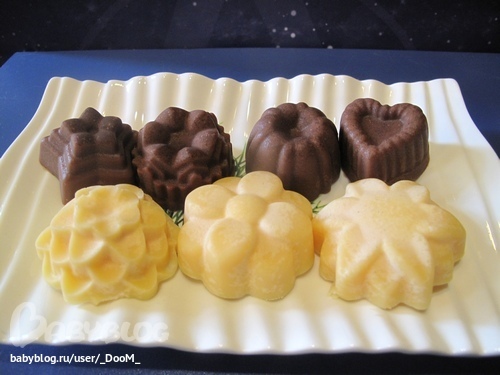 И массажные плиточки. Шоколадные пахнут Малиновым пирожным, а белые - Абрикосом.
