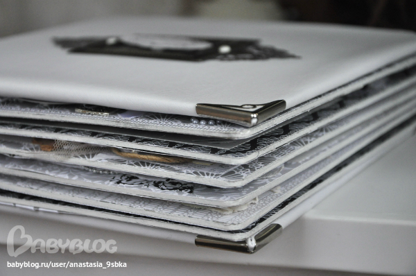 20 х 20см , 12 страниц на твердой основе ( страницы не будут "гулять" и загибаться), в переплете на коже ( никогда не будет заломов, ничего не порвется, сколько ни листай)), с обложкой из кожзама с мет. уголками, на 17 фото 9х13, 1 - 13х13, 3 10х15, 1 - 15х15, есть кармашек для доп. фото или свадебного приглашения на память.