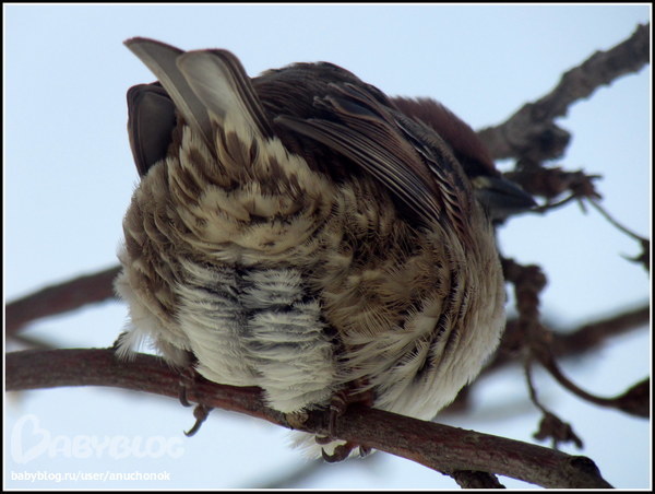 посмотрите какие толстенькие и пушистые попки у наших воробьев!))))))