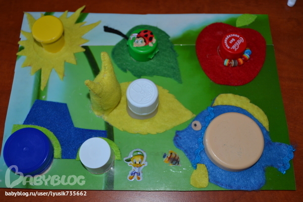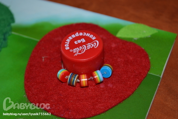 Сделалась быстро, учавствовали: фетр, фанерка,клиенка, клей и собственно главный материал-крышки с горлышками разнокалиберные (от кремов, тюбиков от зуб.пасты, от лекарственных бутыльков, бутылки кока колы, шампуня, 5ти литровой бутылки). Дальше ваша фантазия))