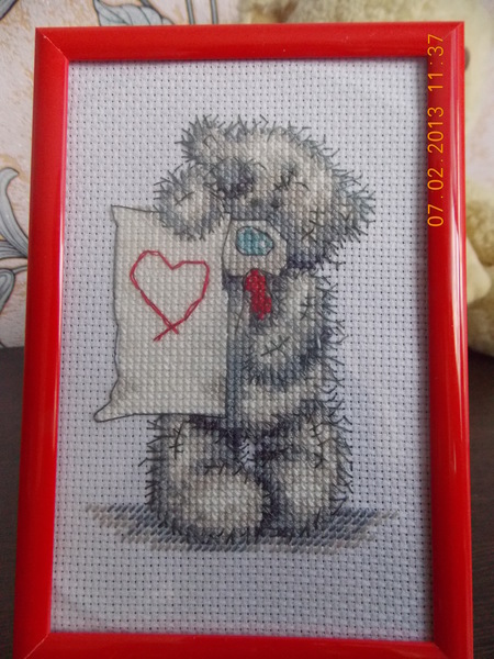 И дам маленький совет: Вы когда оформяете в рамочку, то подкладывайте под вышивку белый лист бумаги - не будут просвечивать дырочки в канве))
