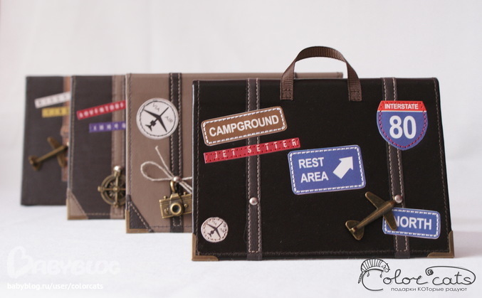 Раз, два, три, четыре... Ну-ка, обложечки, становитесь в ряд, будем вас фотографировать. Да-да - я разговариваю с обложками) Думаю, мне простительно, после нескольких, проведенных с ними ночей. Чемоданчики получились все разные - для разных людей. Есть пара - Чемодан-муж и его чемоданная жена, чемоданчик для летчика и чемоданчик для девушки, которая собирается в Италию.
