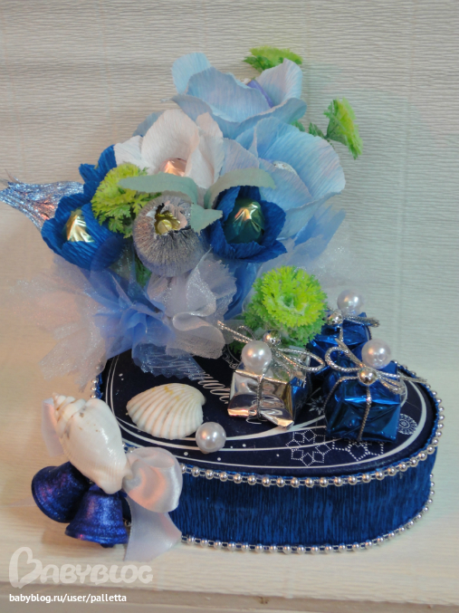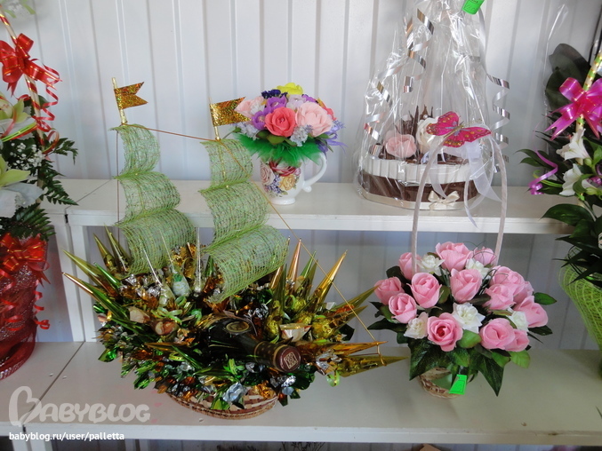 Спасибо, Маша! Эта клиентка у меня их уже три года покупает.)))С конусов вся сладкая флористика начиналась.Я, когда делаю для нее заказ, вспоминаю свои первые работы.Корабль такой весь блестящий и конфет много.А еще есть одна, так для нее я цветочные корзинки с фунтиками из золотой и зеленой фольги делаю: любит чтобы блестело и сияло.Милейшие женщины мои заказчицы и платят хорошо, а я ,в свою очередь, стараюсь, чтобы было на приличном уровне. Так вот и сотрудничаем.