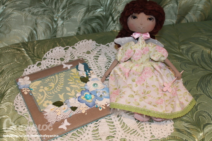 Сначала не хотела сегодня открывать твой подарок...Просто Ангелинка эту неделю у бабушки гостит,а она так ждала свою куколку...Как видишь,я не сдержалась...Она,конечно,меня поругает за несдержанность,но думаю,что твоя красавица её быстро усмирит.