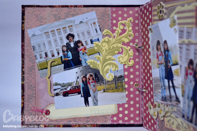 СкрапбукингЭто превый мой миник, 16*16, 8 страничек и 12 фотографий. и ещё это мой лчиный рекорд: сделала его за день, а точнее за те часы, что сын спал. долго думала, что же сделать: рамку для фото, блокнот или альбомчик, и в итоге остановилась на альбоме, т.к. дружим уже 15 лет. половина фото в нём - раритет, и о существовании некоторых фото она не то что позабыла, а даже не догадывалась. ну и конечно мои старания были оценены:)) делался он очень быстро, поэтому честно, не самая аккуратная из моих работ, зато одна из самых душевных:)