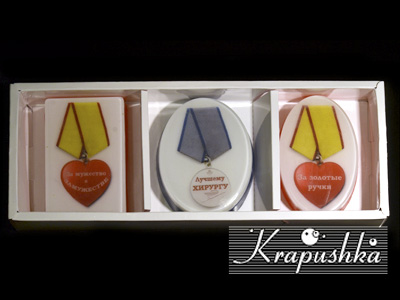 В знак благодарности решила сделать ему и медсестре мыло, т.к. люди с отличным чувством юмора, то и сувенирчик получился с юмором))
