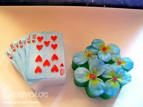 Карты и незабудки это еще из апрельского выкупа у Кошкиной, пришли в октябре, но не было у меня на них настроя и силикон показался дубовым, но, на удивление, мыло вытаскивалось хорошо.