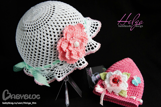 И,как любой наверное мастер,повторяюсь периодически)).Шапочка "Цветочный дуэт"(вариация).