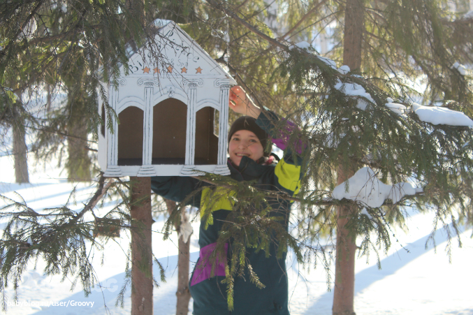 повесили кормушку!