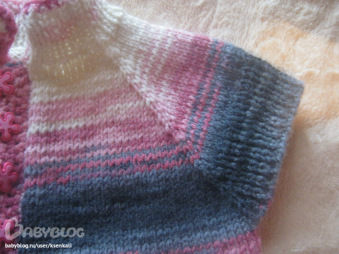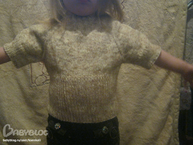 это моя первая кофта регланом(2петельки на реглан) за помощь большое спасибо одной ББ-ке(к сожелению переписку всю удалила и ник не помню),распускала раз десять точно пока до меня не дошло как вязать...