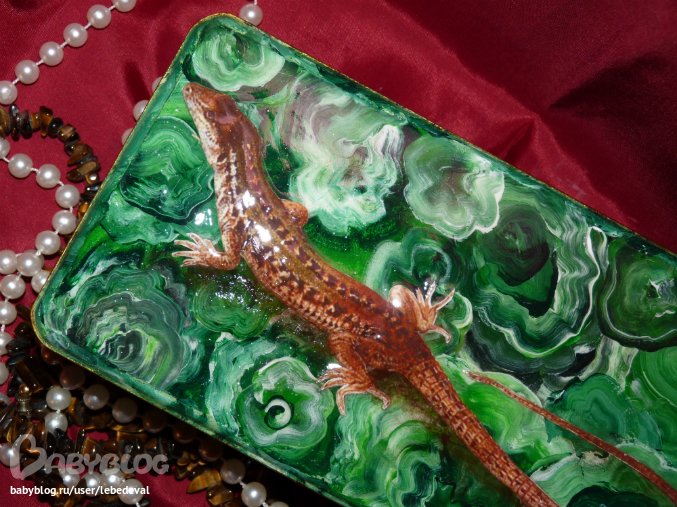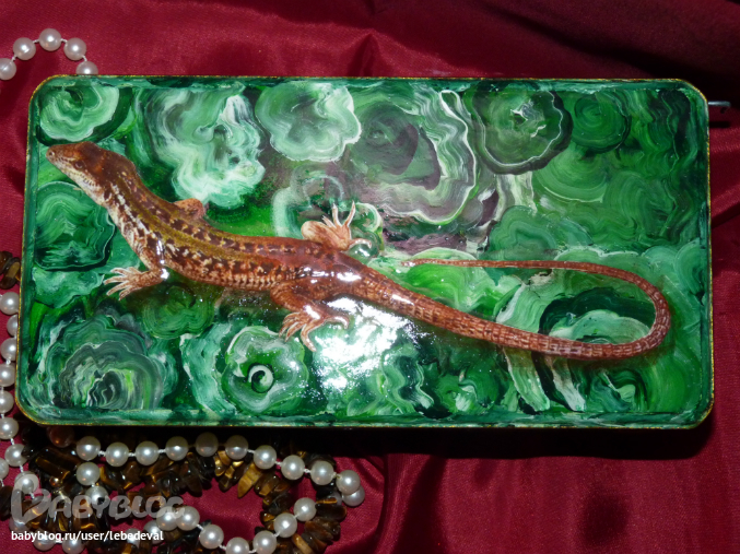 Шкатулка шедевр! Я сначала подумала, что ящерка живая, а это 3-Д. Здорово, не знала что такие картинки уже есть. Спасибо, работа очень хороша. Себе что ли попробовать?