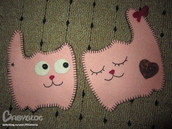 а они очень милые-плоские получились. Я таких шила и набивала, эти тоже хороши! Ближе к новому году можно и как елочные украшения для любителей кошек подарить. Спасибо за идею!