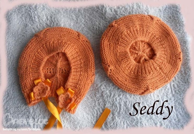 вид с другой стороны, вот только думаю завязки у чепчика атласной лентой не айс.... пряжи савсем не осталось, прямо впритык