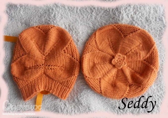 теплые шапочи для моей малышки - и чепчик, и беретка. Очень понравился узор листиками. Идею взяла с сайта парижанка, начала вязать по описанию для шапочки 4 листика, но потом оказалось что наша башка великовата для 4 листиков, но жаль было распускать - таким образом появился чепчик!!!!