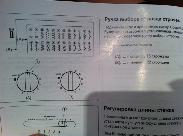 Верхний рычаг в положение -S.S+ . Регулировкадлины стежка от - до + У меня в точ такая же машинка))