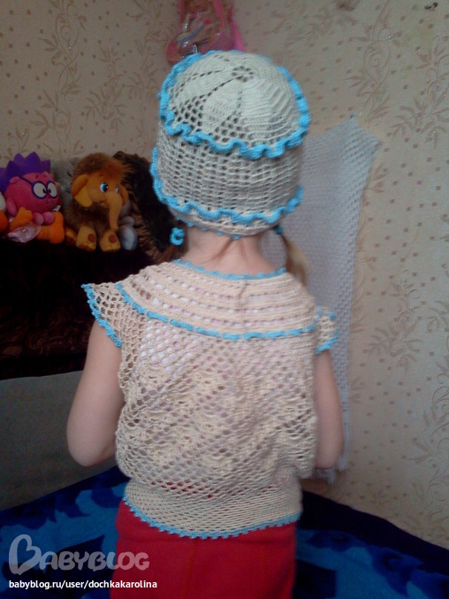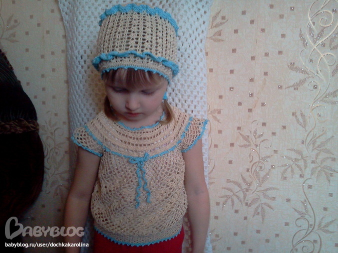 я вязала на 3 года ( девочка у меня миниатюрная), ушло 1 моточек беж и чуть голубого вот схемки