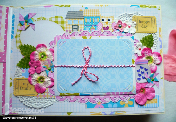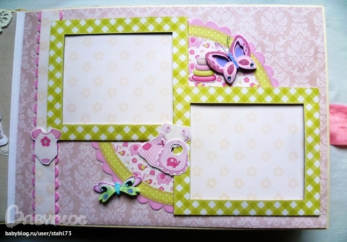 СкрапбукингВот решила показать еще один альбом для новорожденной. Формат А4. В этот раз решила сделать переплет. Оказалось, что это очень легко.