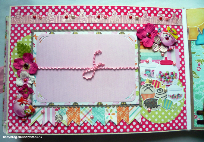 ВАУ!!!!! Какой здоровский!!!! Почти всю бумагу и украшалки я узнала. Но вот на чем они отпечатыны не могу понять....такой яркий цвет получился.... ШИКАРНО!!!!!!!!!