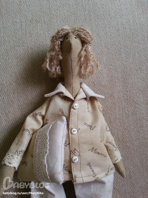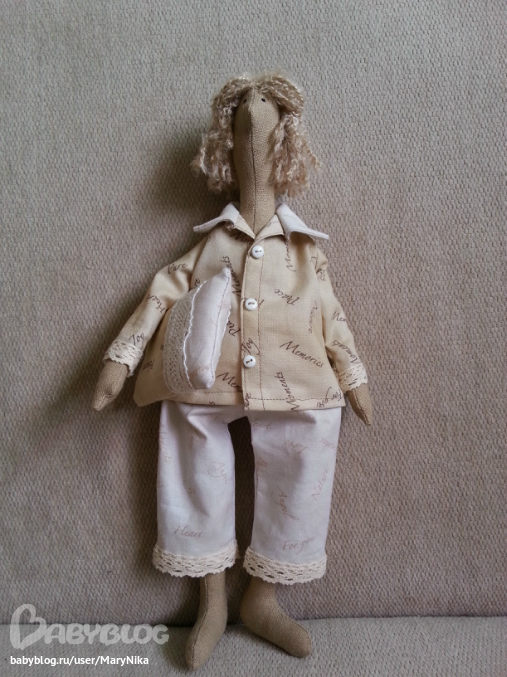 Это ж надо, не только куколку сшить, а ещё и одежонку для неё!!! Каждую мелочь ведь продумала.Мне нравится такая сплюшечка.Как будто только с постельки встала)))