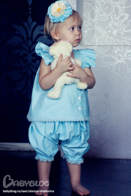 Шитье одежды, выкройки, ремонт одежды, шторы, швейные машины (уже приобретенные)Ну как и обещала ,показываю очередную пошивушку.Это костюмчик летний уже.Вот такие вот необычные штанцы,когда она в них идет так забавно получается,мне очень нравятся такого плана штаны на детках.Летом бегать самое то.К костюму в процессе покупки сандалетки.Уже решила какие,так что будем покупать.Конечно,мне хотелось сделать фотки уже все собрано чтоб было,но сразу все не успеть.Летом уже отчет будет в полной готовности=)).Да еще и хочется во всем фоткать не дома ,конечно.Но пока не где,увы.нашила пока одежду малышке,сейчас процесс шитья для сынульки,мы договорились.Эх,папа наш весь в ожидании,когда же до него очередь дойдет,а у меня столько планов на детей.=))