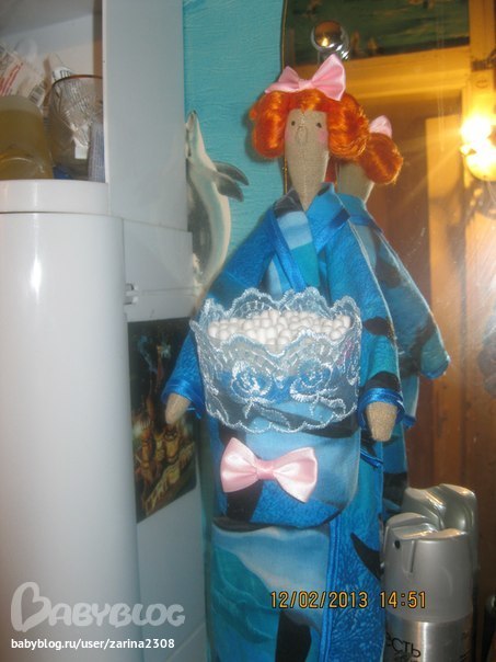 Рискнула я сшить себе в ванную комнату хранительницу, вот что получилось. Сильно не смейтесь ))))