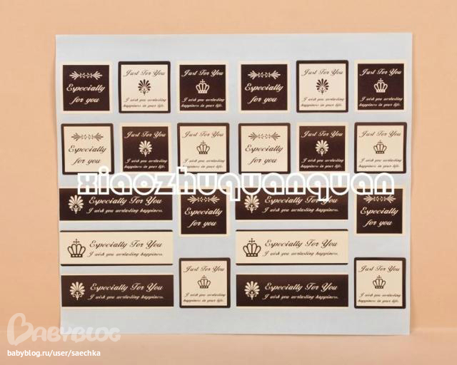 41) 4*4см 4шт 28р/лист очень красивые, светло-бежевый фон, буквы тисненые золотом, глянец