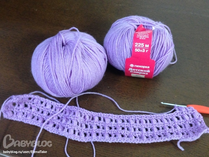 я вязала из тонкого акрила, хорошо получается. Сейчас вяжу короче и немного по другому, не шишечки а 3 псн в одну из хлопка, скоро покажу как получилось.