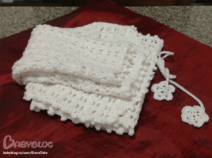 сейчас вяжу из акрила, шелковистый такой, пото покажу и ниточки тоже. Тоже белое вяжу.