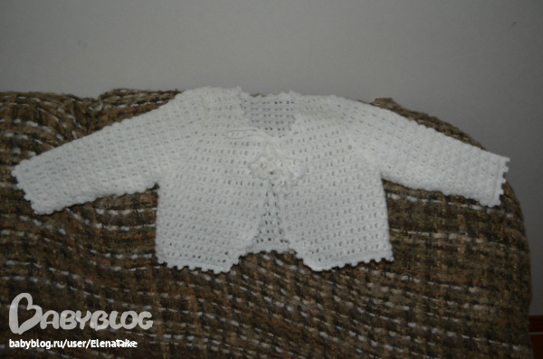 Предлагаю связать. Вязала уже 3 раза в белом цвете, на возраст полтора-два года. Вяжется легко и быстро, присоединяйтесь, на выходных начну, только теперь хочу в другом цвете.
