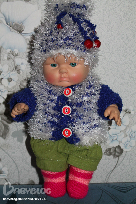 Одёжка красивая, шапочка с кофточкой очень симпатичные. А вот пупс страшненький )))))
