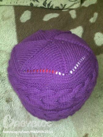 захотелось связать вот такой беретик.вяжется очень легко.связала поглубже.шов сзади.к сожалению были вот такие вот ниточки.поярче было бы еще симпатичнее.пряжа семеновская.мериноска...из остатков..