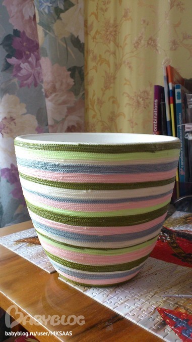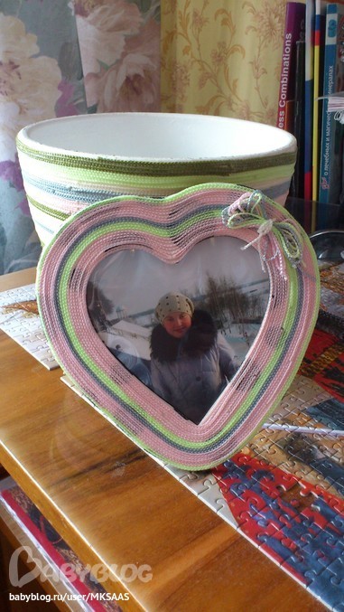 К НГ подарили мы нашей старшенькой вот такие вот шторы-кисею.Длину отрезали и осталось много симпотичных ниточек.А еще у нас был один не очень симпотичный керамический горшочек.Я решила их подружить(ниточки-отрезочки и горшочек) вот что из этого получилось.У горшочка есть конкретное назначение-хранить дочкины резиночки на волосы)А еще получилась вот такая вот фото0рамочка из картона и ниточек-отрезков.