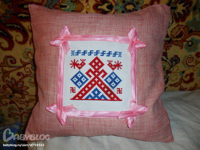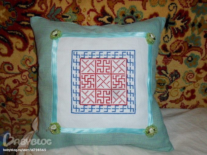 не ожидала увидеть Макошь)а во второй подушке на мой взгляд не совсем правильно два раза один и тот же символ использовать