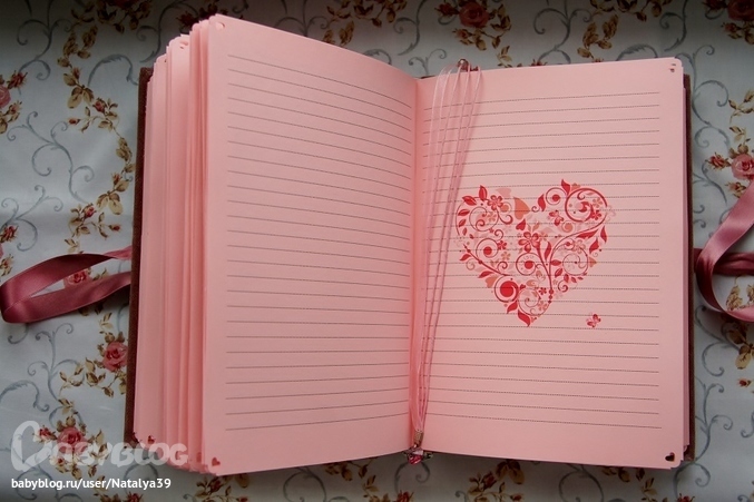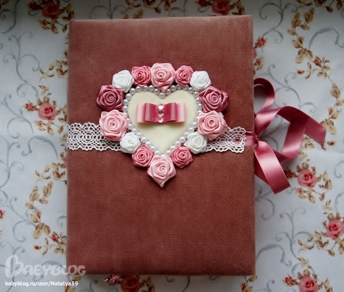 120 линованных листочков, некоторые с сердечками. Обложка - бархат. Розочки делала сама )))