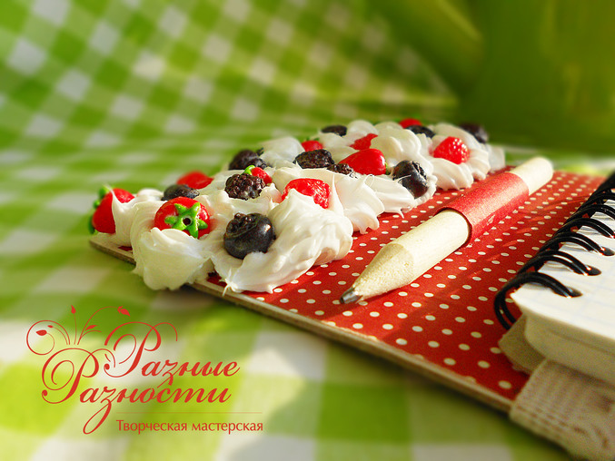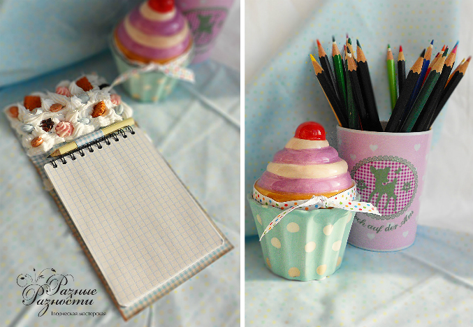 Материалы: картон, бумага для скрапбукинга, полимерная глина. Карандаштк и блокнот можно менять