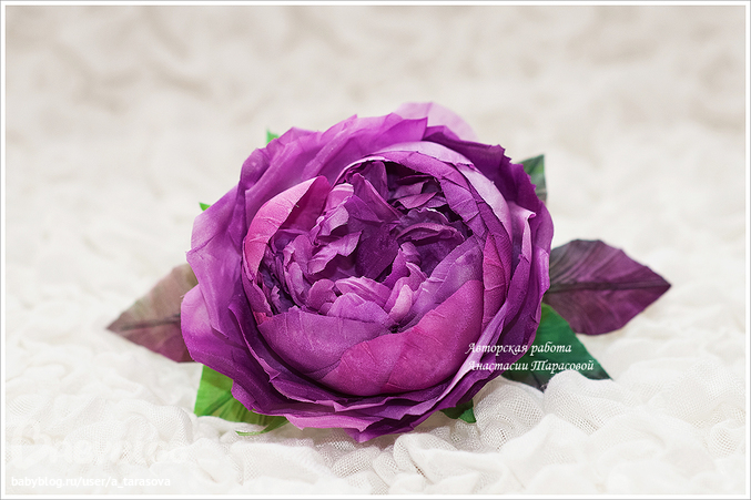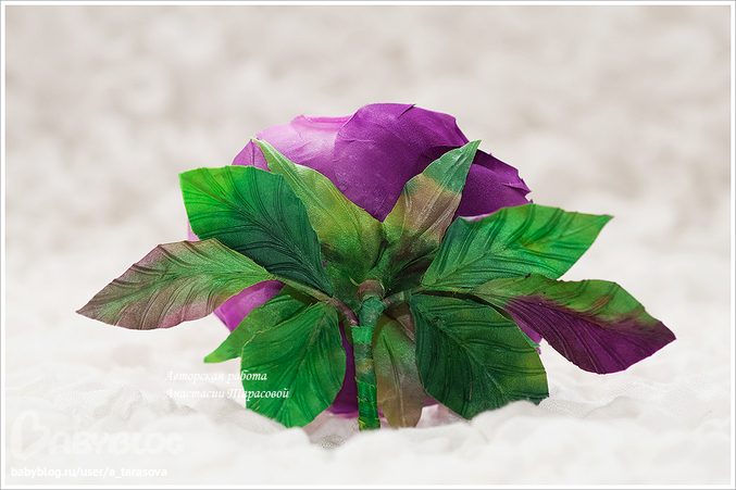 выкройку я сама рисовала,а вот листочки взяла у розочки. Сам цветок из легчайшего крепдешина,листики из атласа.