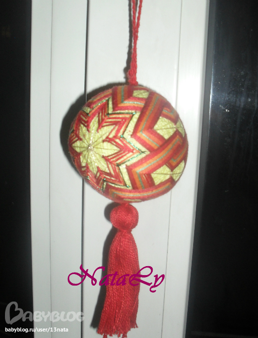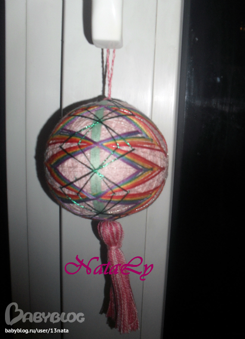 Спасибо, Катюш))) засмущала прямо)))) сама, конечно! Сижу по сайте изучаю (темари.ру который), смотрю фотки темариков в интернете, потом пытаюсь изобразить это все на шарике.