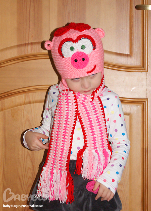 Увидела дочка вот эту красоту http://www.babyblog.ru/community/post/rukodelie/1780631 и потребовала себя такую же. Я, как смогла, повторила. В комплектик связался шарфик, идея шарфика тоже утащена отсюда же, с ББ, не помню только автора. Дочка в восторге от комплекта! Шапкой уже успела похвастаться в садике, шарф - "свежеиспеченный"