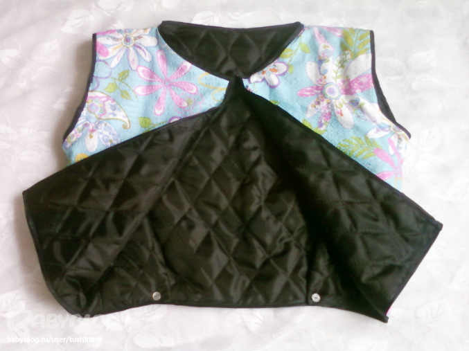 Шитье одежды, выкройки, ремонт одежды, шторы, швейные машины (уже приобретенные)Попыталась я сшить съемную подкладочку в свою куртку - она тоненькая совсем, хотелось чуть-чуть утеплить... Сшила без рукавов,но с миллионом косяков - шить только начинаю))). Подкладочка получилась двухсторонная, можно носить как жилетку - что я и делаю дома))))