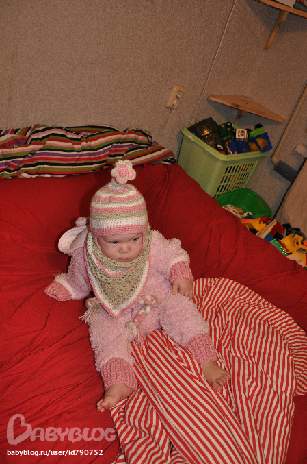 надоели шарфики - связался бактус. и еще наш новый комбез стал нам чуть коротковат - удлинли)