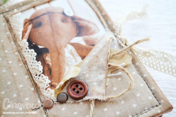 Новый блокнотик, А6. 120 кофейных листочов (240 стр.), лен, кружево, фурнитура, фото моей слоньки.