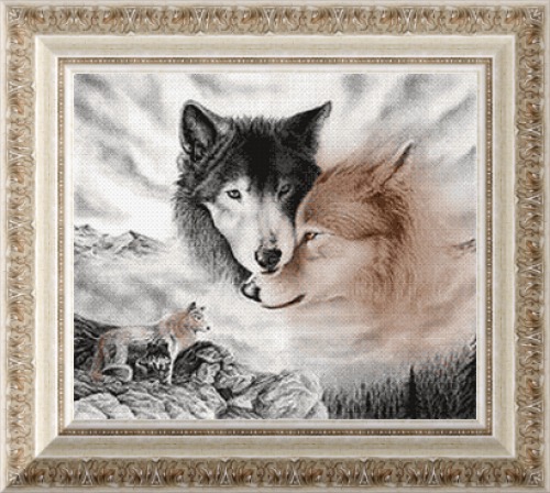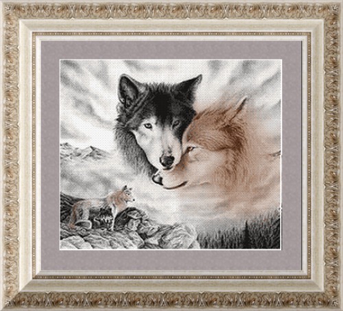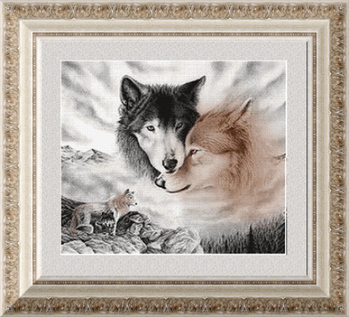 Привет девушки!Наткнулась на тему решила показать своих волков вышивала давно и долго 1,5года были большие перерывы. И до сих пор я не оформила ее, но очень люблю.