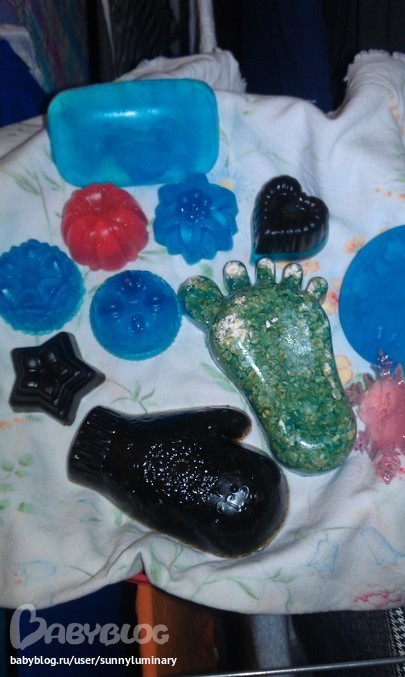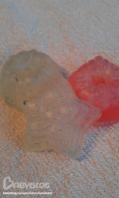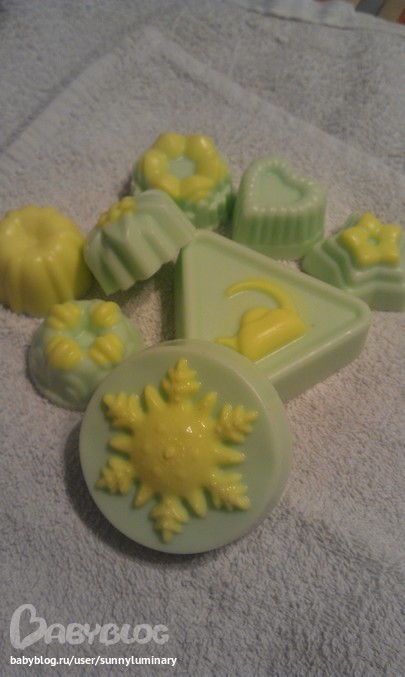 Это случайно вышло)))) Добавляла отдушки и, как потом оказалось, эфирные масла (невнимательность меня подвела), потом девочки с ББ подсказали мою ошибку, запахи-то смешивались. А мама моя так вообще требует без отдушек и красителей)))) А затирать, когда уже застынет?
