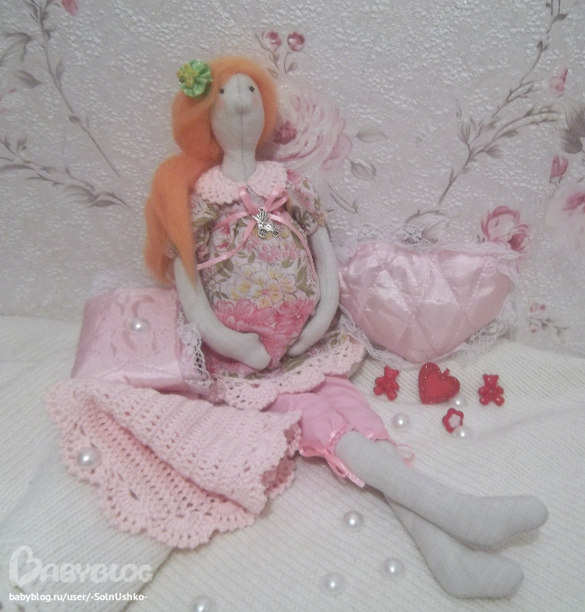 Моя беременяшечка! В один прекраснй день захотелось мне сшить ее. Шила с нежностью и любовью,так как сама очень хочу малша! Вязаные аксессуар в подарок(еще будет подушечка) 500 рублей