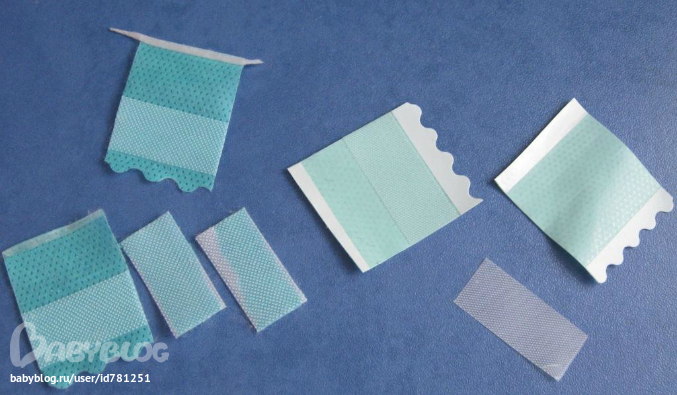 слева - от "памперс" справа - от польских подгузов "Дада". Памперсы не отклеиваются - из просто вырезаю, от дада - прям сама липучка отклеивается (ниже).