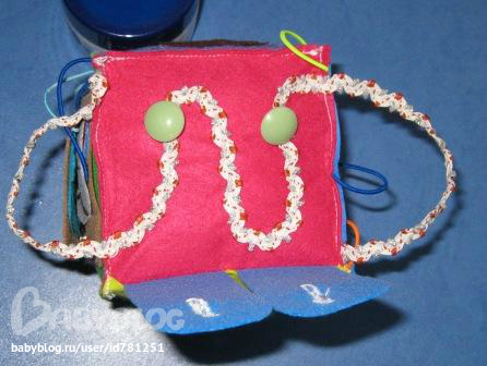 чтобы как-то разнообразить - пришила ленту, можно пальчиком водить по змейке.