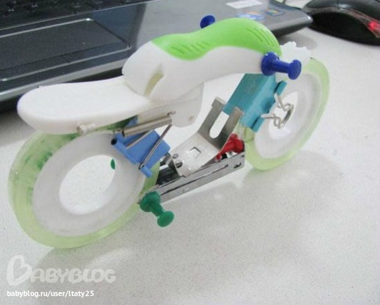 Разбираем степлер на запчасти, смотрим на фото и собираем мотоцикл.