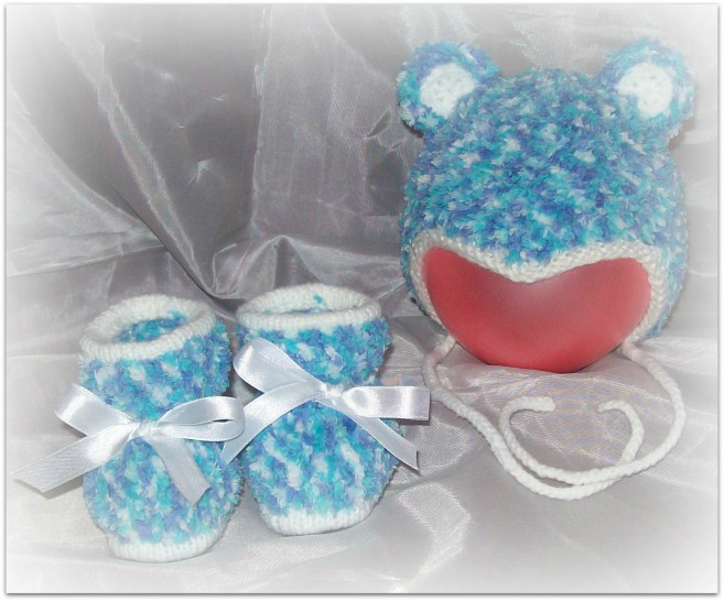Пушистые и мягкие шапочка и пинетки для новорожденного. Идеально подходит для прохладной погоды.