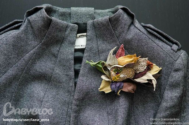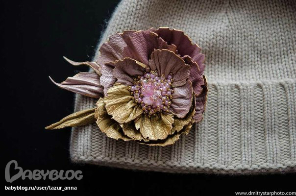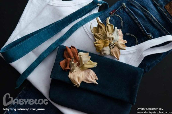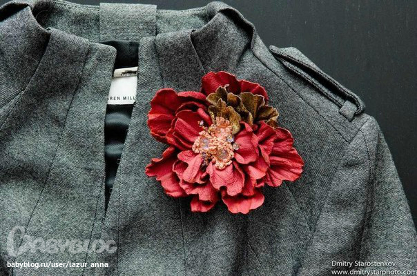 Изделия из кожиЛюбые варианты цветов Lazuranna от скромного моноцветного до играющего целой палитрой красок, можно носить на лацкане пиджака, на классическом пуловере серого или телесного цвета. При этом моноцветные вариации более скромные и элегантные, а яркие и сочетающие несколько оттенков, дают возможность поиграть цветом с остальными аксессуарами вашего образа.