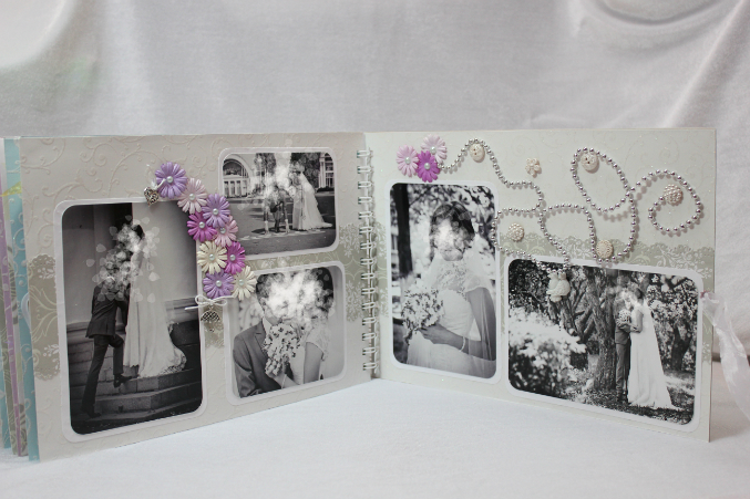 Бумагу использовала разных фирм, хотелось сделать альбом нежным и легким. На фото плохо видно, но белая бумага очень красиво переливается.